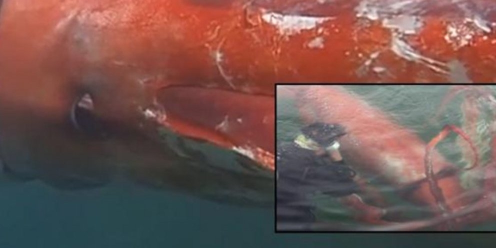 Ένα τεράστιο καλαμάρι το οποίο σπάνια βρίσκεται μακριά από τα βαθιά νερά των ωκεανών, εντοπίστηκε να κολυμπάει κοντά σε μία προβλήτα στην κεντρική Ιαπωνία.