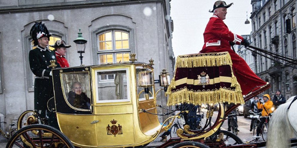 Η 75χρονη βγήκε από το παλάτι με την πολυτελή άμαξά της και διέσχισε την Κοπεγχάγη, στο πλαίσιο των εκδηλώσεων για την έλευση της νέας χρονιάς. Η άμαξα είχε κατασκευαστεί το 1840 και είναι επενδυμένη με φύλλα χρυσού 24 καρατίων.