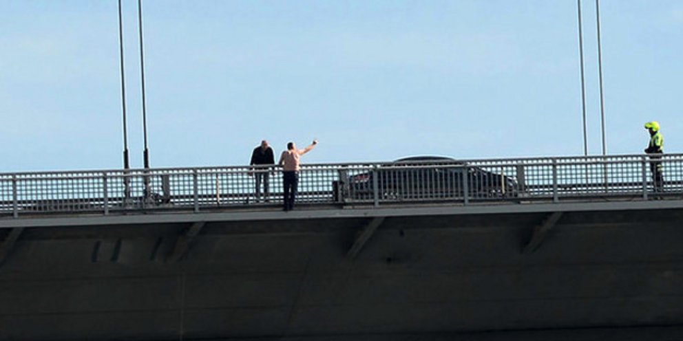 «Τελείωνε. Είμαστε παγιδευμένες εδώ για πολλές ώρες εξαιτίας σου. Άντε πήδα!» φώναξαν οι δύο βιαστικές γυναίκες σε έναν άνδρα που είχε σταματήσει το αυτοκίνητό του στη γέφυρα απειλώντας ότι θα πέσει στο κενό.