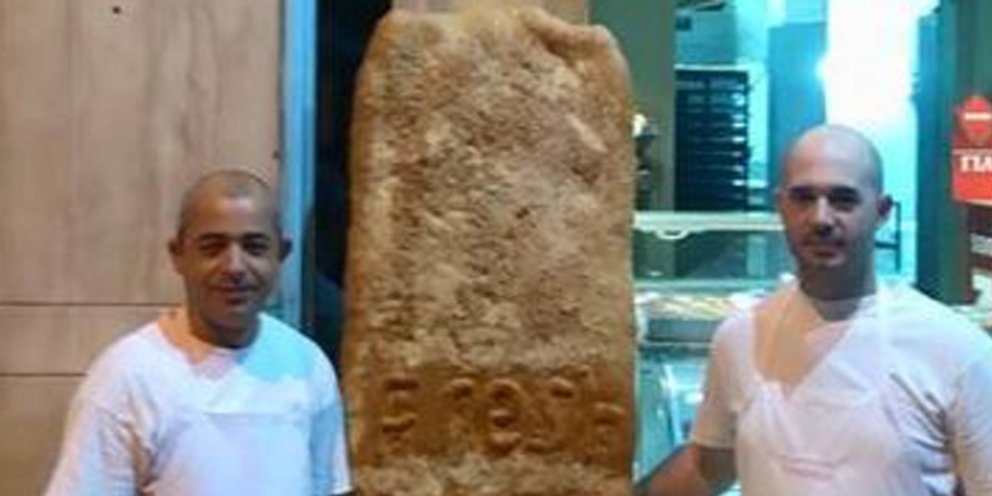 ΔΗ λαγάνα «γίγας» που φιγουράρει στην είσοδο φούρνου και πιο συγκεκριμένα στην 12ου Συντάγματος («Fresh Baket»), σίγουρα τραβάει τα βλέμματα όσων από το πρωί επισκέπτονται το κατάστημα για να προμηθευτούν την καθιερωμένη λαγάνα.