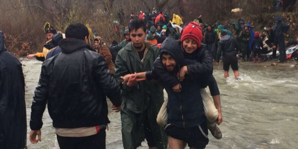Στο δρόμο πίσω για την Ειδομένη -Πρόσφυγες γυρίζουν πίσω ακολουθώντας έναν ποταμό από την ΠΓΔΜ