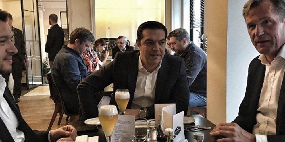 Με μια διαφορετική και απρόσμενη παρέα κάθισε στο ίδιο τραπέζι ο Αλέξης Τσίπρας, κατά τη διάρκεια της παραμονής του στις Βρυξέλλες.