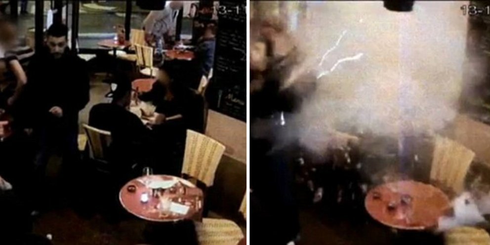 Οπως φαίνεται και στο βίντεο ο 31χρονος τρομοκράτης μπήκε μέσα στο εστιατόριο στις 9:40, το βράδυ της Παρασκευής. Αν και φαινόταν νευρικός και αμήχανος κατευθύνθηκε προς ένα άδειο τραπέζι. Στη συνεχεια κατεβάζει το κεφάλι του, δείχνει να προσεύχεται και με το αριστερό του χέρι πυροδοτεί τη ζώνη με τα εκρηκτικά.