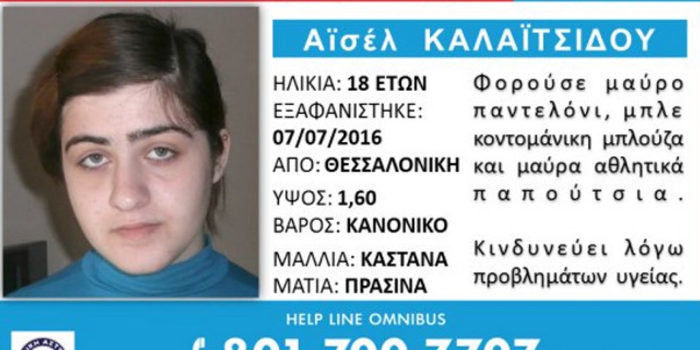 Η Αϊσέλ (ή Άσια) Καλαϊτσίδου, 18 ετών, εξαφανίστηκε το μεσημέρι της Πέμπτης (7/7) από την οικία της στη Θεσσαλονίκη.
