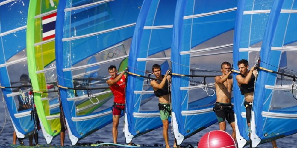 Μετά από τις τρεις πρώτες ιστιοδρομίες της πρώτης ημέρας για τα RS:X, ο Ελληνας ιστιοπλόος βρίσκεται στην τρίτη θέση της κατάταξης, με 10 βαθμούς ποινής, πίσω από τον Βρετανό Νικ Ντέμπσι (4 β. Ποινής) και τον Ολλανδό Ντόριαν Φαν Ρισελμπέργκε (9 β. Ποινής).