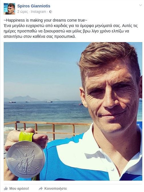 Μάλιστα, αφού ξεκουραστεί από την υπερπροσπάθεια του, ο Έλληνας Ολυμπιονίκης υποσχέθηκε να απαντήσει, στο κάθε μήνυμα που του έστειλαν οι θαυμαστές του, ξεχωριστά.