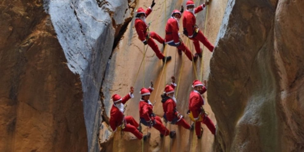 Με γιορτινή διάθεση και τη στολή του Άγιου Βασίλη, 12 μέλη του ομίλου πραγματοποίησαν τεχνική κατάβαση του φαραγγιού.