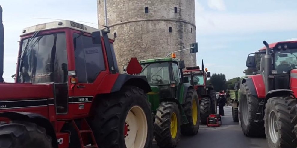Νωρίτερα, στις 13:30 οι αγρότες έφτασαν μπροστά στον Λευκό Πύργο και πραγματοποίησαν συμβολική κινητοποίηση, με αφορμή τη 10η Διεθνή Εκθεση Κτηνοτροφίας και Πτηνοτροφίας «Zootechnia».