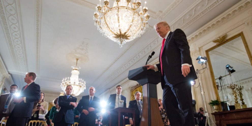 Με δριμύτητα καταφέρθηκε την Πέμπτη εναντίον της «ανεντιμότητας» του Τύπου ο Ντόναλντ Τραμπ, ενώπιον των δημοσιογράφων που είχαν προσέλθει για να καλύψουν την πρώτη συνέντευξη Τύπου που παραχώρησε μόνος του στον Λευκό Οίκο.