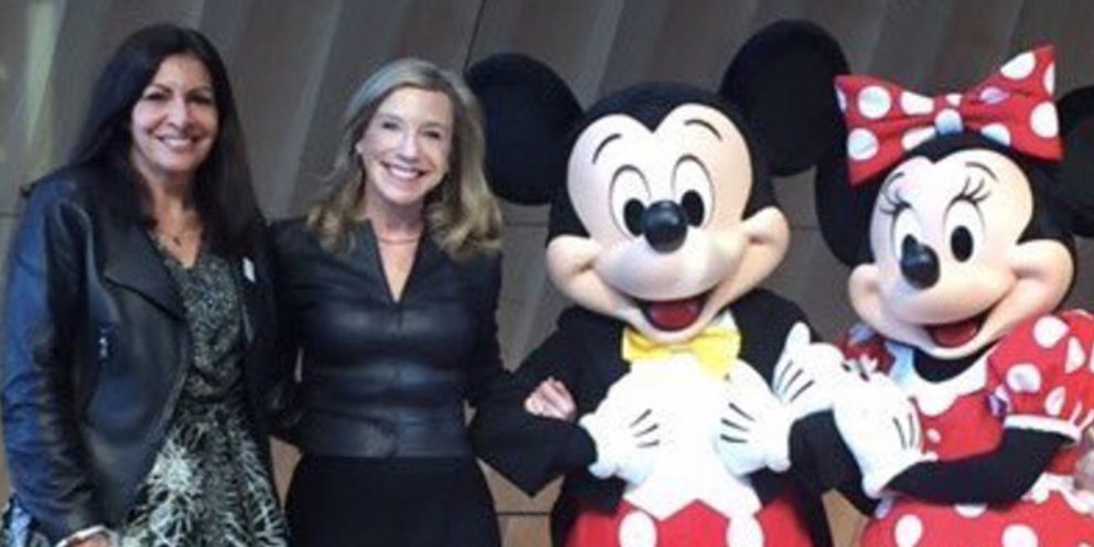Η δήμαρχος της πόλης του φωτός πόζαρε δίπλα στον Μίκι και την Μίνι, στον Πύργο του Αιφελ, στέλνοντας ένα μήνυμα μέσω Twitter στον Αμερικανό πρόεδρο.