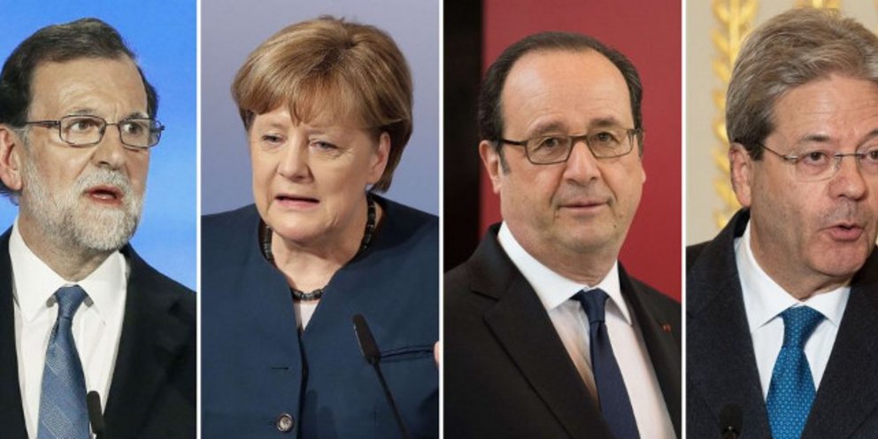 Οι 4 ηγέτες θα βρεθούν γύρω από ένα δείπνο, την Δευτέρα, 6 Μαρτίου, στο παλάτι των Βερσαλλιών, στα περίχωρα του Παρισιού: Ο Φρανσουά Ολάντ, η Ανγκελα Μέρκελ, ο Πάολο Τζεντιλόνι και ο Μαριάνο Ραχόι. Ορισμένοι εκτιμούν ότι δημιουργείται έτσι «ο ισχυρός πυρήνας» στο εσωτερικό της Ενωσης. Πρόκειται, πράγματι, για τις 4 ισχυρότερες χώρες της ΕΕ.