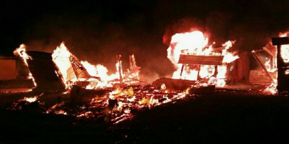 Η πυρκαγιά ξέσπασε αργότερα και έκαψε πολλές από τις ξύλινες καλύβες του καταυλισμού, όπου βρίσκονταν 1.000 ως 1.500 μετανάστες, πολλοί από τους οποίους είναι ιρακινοί κούρδοι, σύμφωνα με ανθρωπιστικές οργανώσεις.