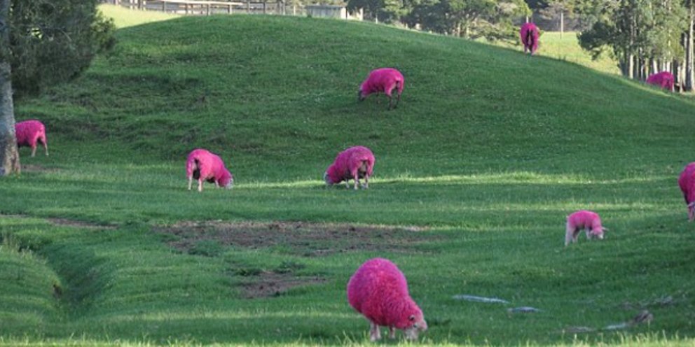 Οι γονείς που θα επισκεφτούν το πάρκο SheepWorld, κοντά στο Όκλαντ της Νέας Ζηλανδίας, πρέπει να είναι προετοιμασμένοι να λύσουν τις απορίες που σίγουρα θα έχουν τα παιδιά τους, όταν δουν ότι εκεί ζουν...ροζ πρόβατα!