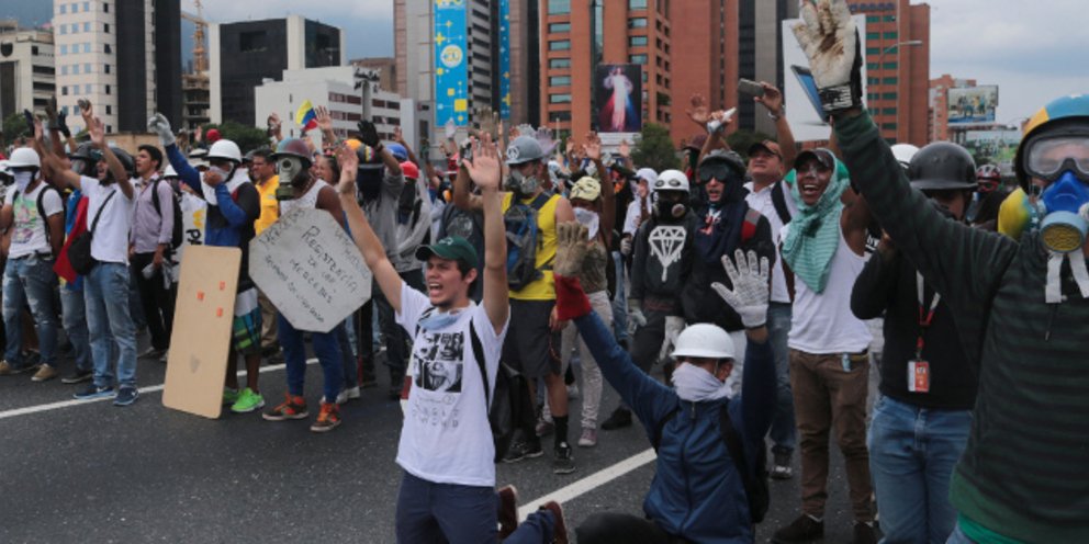 Νεαροί διαδηλωτές με καλυμμένα τα πρόσωπα έριξαν πέτρες και βόμβες μολότοφ εναντίον των αστυνομικών σε πολλά σημεία στο ανατολικό Καράκας, ενώ συγκρούσεις σημειώθηκαν και σε κάποιες δυτικές Πολιτείες της Βενεζουέλας. Πολλοί άνθρωποι τραυματίστηκαν, εκ των οποίων τρεις από σφαίρες στην πόλη Μερίντα, ενώ κάποια επεισόδια συνεχίζονταν μέχρι το βράδυ.