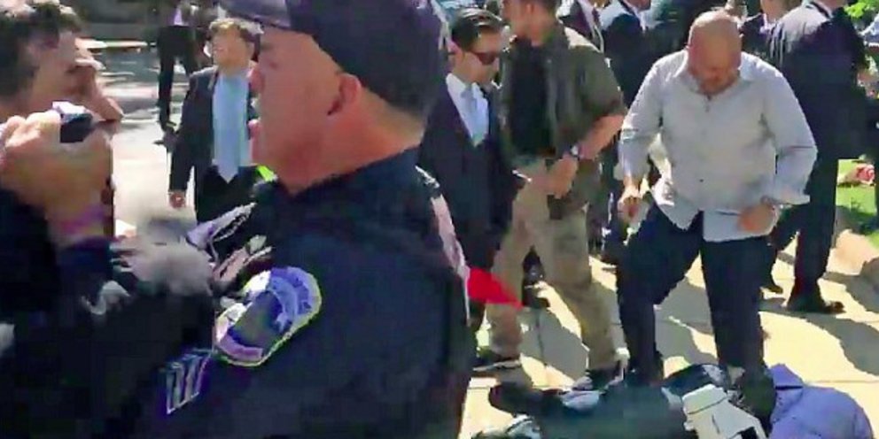Οι σωματοφύλακες του Ερντογάν πρωταγωνίστησαν επίσης και σε επεισόδια που συνέβησαν έξω από τον Λευκό Οίκο την ίδια μέρα λίγο πριν τη συνάντηση Τραμπ-Ερντογάν.