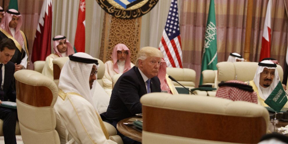 Ο Τραμπ έτυχε θερμής υποδοχής από τους άραβες ηγέτες, οι οποίοι έβαλαν στην άκρη την αντιμουσουλμανική προεκλογική ρητορική του και επικεντρώθηκαν στην επιθυμία του να πατάξει την επιρροή του Ιράν στην περιοχή, μια δέσμευση που δεν φάνηκε να είχε ο προκάτοχός του στην προεδρία Μπαράκ Ομπάμα.