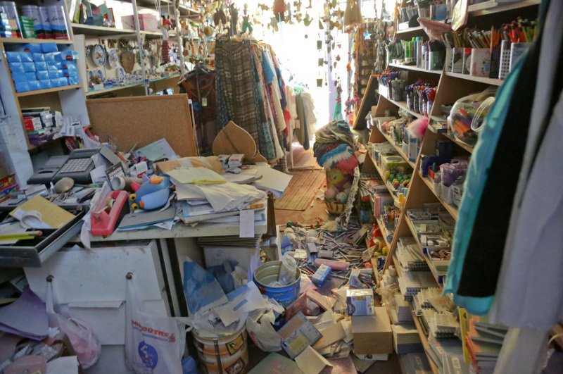 Η ένταση του σεισμού αποτυπώνεται και στο παρακάτω βίντεο, από κάμερα ασφαλείας μέσα σε μια κάβα στη Μυτιλήνη, το οποίο ανάρτησε στο Facebook ο Στέλιος Κουτσουράδης. Τα ράφια με τα προϊόντα κουνιούνται πέρα-δώθε, μπουκάλια καταλήγουν στο πάτωμα και σπάνε.