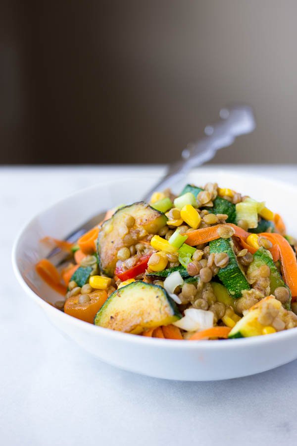 Σας προτείνω μια χορταστική σαλάτα φακές με κολοκυθάκι και καρότο, πλήρες πιάτο. Vegan, αποκλειστικά. Χορταίνει τρομερά, και αδυνατίζει.