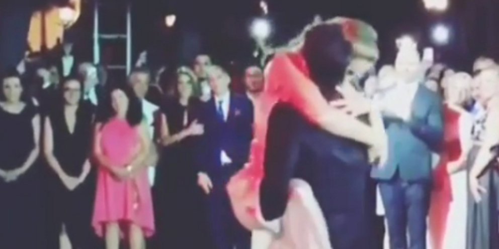 Πάντως το ζευγάρι φάνηκε να το χάρηκε πάρα πολύ, όπως και οι καλεσμένοι, οι οποίοι τους είχαν περικυκλώσει και τραβούσαν βίντεο.