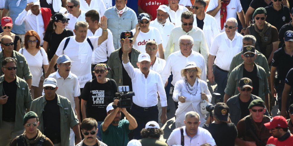 Ο επικεφαλής της αξιωματικής αντιπολίτευσης Κεμάλ Κιλιτσντάρογλου αναμένεται να ολοκληρώσει σήμερα «την πορεία για τη δικαιοσύνη».