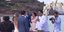 Η νύφη, πανέμορφη μέσα στο λευκό νυφικό της, έλαμπε από ευτυχία στο πλευρό του συζύγου της. Οι δυο τους περπάτησαν στον ειδικό διάδρομο που είχε στηθεί στην αμμουδιά και τα λουλούδια έπεσαν βροχή.