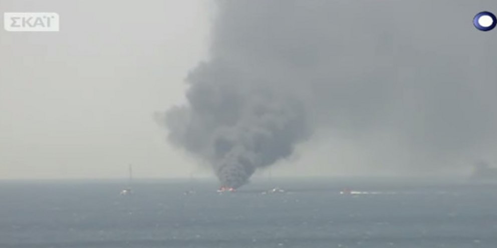 Αυτή την ώρα πυροσβεστικό σκάφος προσπαθεί να κατασβέσει τη φωτιά.