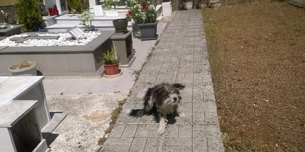 Οπως αναφέρει σε δημοσίευμά του το epirus-tv-news.gr όταν έφτασε στο χώρο του κοιμητηρίου είδε κάτι που της τράβηξε αμέσως το ενδιαφέρον. Ενα μικρόσωμο και εμφανώς ταλαιπωρημένο σκυλάκι που καθότανε ανάμεσα στα μνήματα .