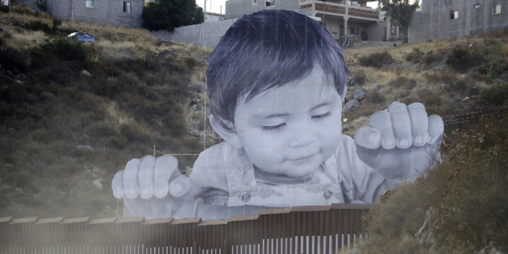 Πρόκειται για το έργο του Γάλλου καλλιτέχνη JR, ο οποίος τοποθέτησε την τεράστια φωτογραφία, ύψους 20 μ., με στόχο να τροφοδοτήσει τη συζήτηση για τη μετανάστευση. «Στρέφει την προσοχή στο ζήτημα με θετικό τρόπο», σχολίασε ο Αμερικανός Ελμοντ Νταβάντες, που φωτογράφιζε το έργο από την αμερικανική πλευρά, μιλώντας στον Guardian. Αλλά και επί μεξικανικού εδάφους, αρκετοί το πλησίασαν, για να βγάλουν selfies με το έργο, ενώ ο κόσμος χαιρετούσε όσους βρίσκονταν στην άλλη πλευρά των συνόρων.