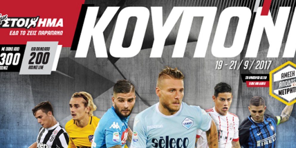 Μεγάλο ενδιαφέρον παρουσιάζει το κουπόνι του ΠΑΜΕ ΣΤΟΙΧΗΜΑ, από σήμερα έως και την Πέμπτη 21 Σεπτεμβρίου, αφού μεταξύ άλλων περιλαμβάνει αγώνες της εμβόλιμης αγωνιστικής της Serie A, της Bundesliga, της LaLiga και παιχνίδια του Κυπέλλου Ελλάδας και του League Cup της Αγγλίας.