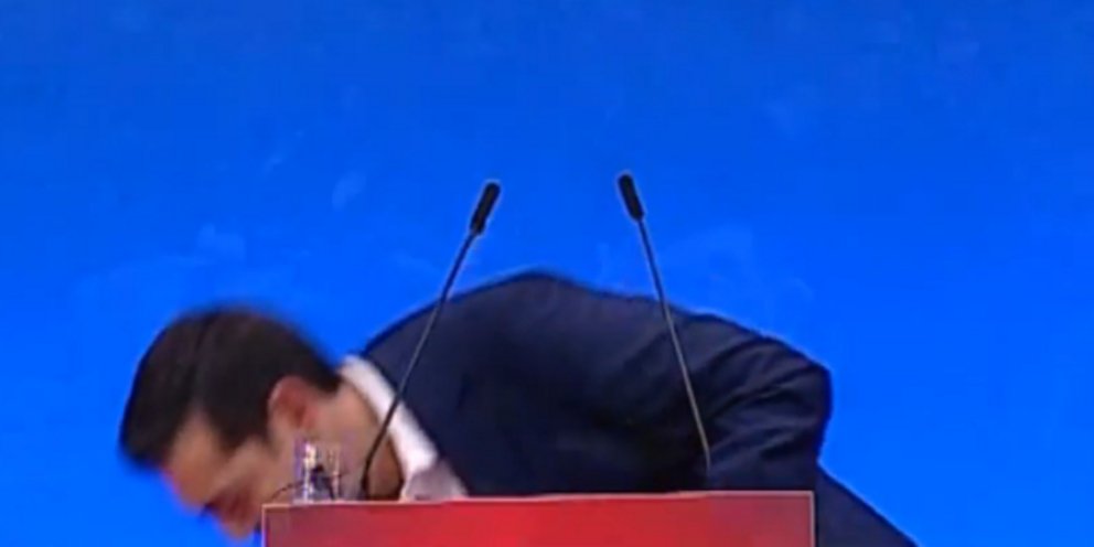 Ενα μίνι... ατύχημα είχε ο Αλέξης Τσίπρας κατά τη διάρκεια της ομιλίας του στο Περιφερειακό Συνέδριο για την Παραγωγική Ανασυγκρότηση, στη Λάρισα
