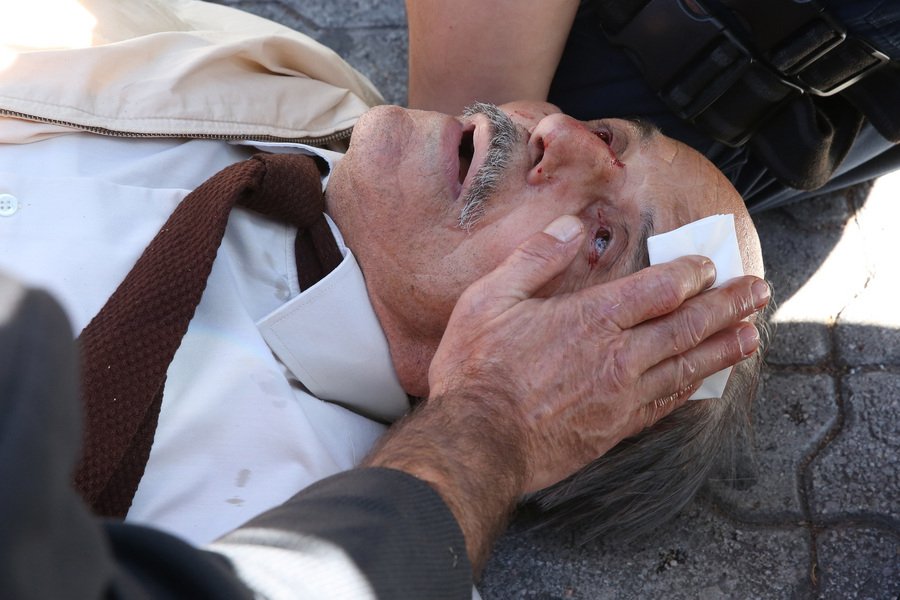 Ενας ηλικιωμένος άνδρας τραυματίστηκε σοβαρά στο κεφάλι μετά από σπρώξιμο που δέχτηκε από διερχόμενο άνδρα των ΜΑΤ.