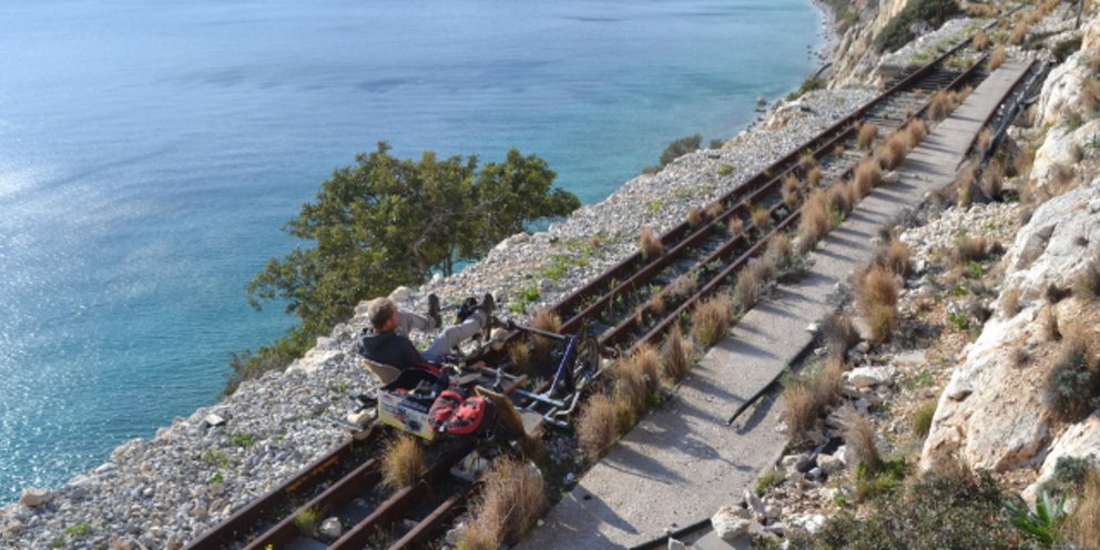 Δυστυχώς, προσθέτει, η ποδηλασία στις ράγες ανά την Ελλάδα σου αφήνει και άσχημες εικόνες. «Εχω δει να λειτουργούν καφετέριες ακόμη και πάνω στις ξεχασμένες γραμμές, ή συναντάω ξηλωμένες γραμμές, προφανώς από επιτήδειους που θέλουν να εκμεταλλευτούν το υλικό» αναφέρει.