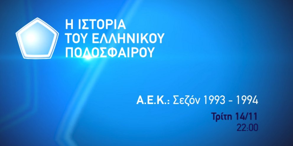 Με το πέμπτο επεισόδιο που είναι αφιερωμένο στην ΑΕΚ της σεζόν 1993-1994 συνεχίζεται την Τρίτη 14 Νοεμβρίου στις 22:00 στο NovasportsstoriesHD η μεγάλη συμπαραγωγή ΕΡΤ – Νova, «Η ιστορία του ελληνικού ποδοσφαίρου».