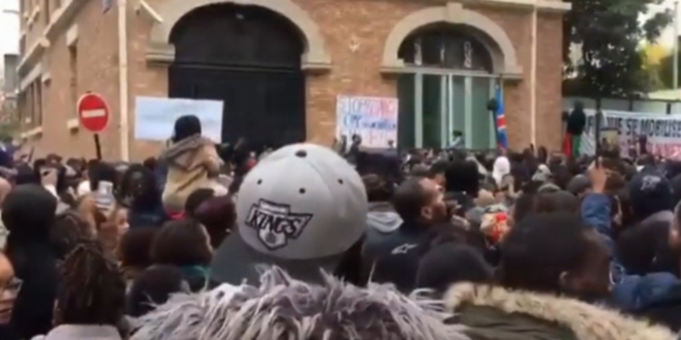 Οι διαδηλωτές, κρατώντας πλακάτ που έγραφαν «Όχι στη δουλεία στη Λιβύη», συγκεντρώθηκαν γύρω στις 16.00 τοπική ώρα στη Λεωφόρο Φος του Παρισιού, σε μικρή απόσταση από την Πλας ντε λ' Ετουάλ, όπου είχαν αναπτυχθεί αστυνομικές δυνάμεις. Κατόπιν εξέφρασαν την πρόθεσή τους να κάνουν πορεία μέχρι το προξενείο της Λιβύης.