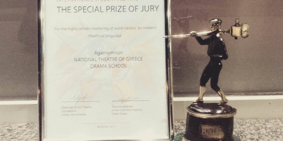 Η πτυχιακή παράσταση Αγαμέμνων του Αισχύλου, σε διδασκαλία Δημήτρη 'Ημελλου, με την οποία οι απόφοιτοι της Σχολής (2016-2017) συμμετείχαν στο 37ο Διεθνές Φοιτητικό Φεστιβάλ, απέσπασε το «Ειδικό Βραβείο της Επιτροπής» του Φεστιβάλ.