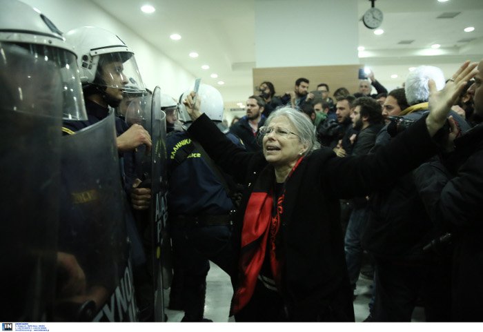 Υπενθυμίζεται πως την Τετάρτη το Ειρηνοδικείο μετατράπηκε σε πεδίο μάχης ανάμεσα σε ΜΑΤ και διαδηλωτές-μέλη των συλλογικοτήτων.