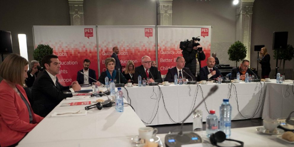 Ο πρωθυπουργός - που δεν χάνει ευκαιρία να παραβρίσκεται στις συνόδους των Ευρωπαίων Σοσιαλιστών - γεγονός που έχει προκαλέσει και την αντίδραση της Φ. Γεννηματά - είχε αρκετά «πηγαδάκια» με τον Πιέρ Μοσκοβισί, τον Τζιάνι Πιτέλα και άλλα επιφανή μέλη του PES.