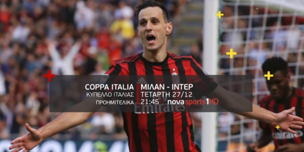 Οι συνδρομητές των αθλητικών καναλιών της Nova, από την Τετάρτη 27 Δεκεμβρίου έως και το Σάββατο 30 Δεκεμβρίου, θα έχουν την ευκαιρία να παρακολουθήσουν ζωντανά και αποκλειστικά το νοκ άουτ ντέρμπι του Μιλάνου, Μίλαν – Ίντερ για την προημιτελική φάση του Κυπέλλου Ιταλίας.