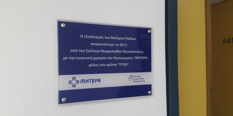 Το ΜΗΤΕΡΑ ανταποκρίθηκε στο αίτημα του Συλλόγου Νεφροπαθών Θεσσαλονίκης ανακαινίζοντας και εξοπλίζοντας τον θάλαμο Παίδων του νοσοκομείου.