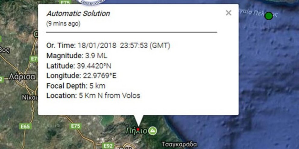 Σεισμός 3,9 βαθμών της κλίμακας Ρίχτερ σημειώθηκε στις 01.57 τα ξημερώματα της Παρασκευής στον Βόλο.
