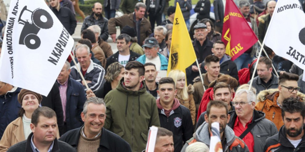 Μέλη της Πανελλαδικής Επιτροπήως Μπλόκων κάνουν πορεία προς τη Διεθνή Εκθεση Θεσσαλονίκης, κλιμακώνοντας τις κινητοποιήσεις τους, στο πλαίσιο της 27ης Agrotica.