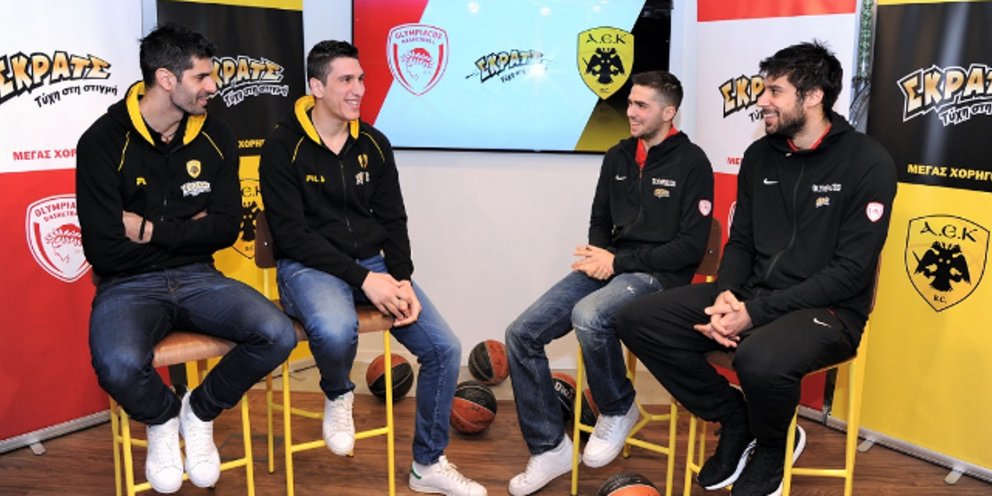 Πρόβα τελικού έκαναν τέσσερις παίκτες του Ολυμπιακού και της ΑΕΚ στα κεντρικά γραφεία του ΟΠΑΠ, λίγες ημέρες πριν από το μεγάλο παιχνίδι για το κύπελλο.