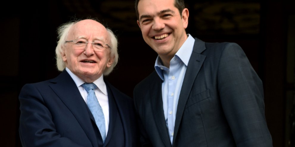 Στην αναγκαιότητα κοινωνικής συνοχής αναφέρθηκαν ο Αλέξης Τσίπρας και ο Ιρλανδός Πρόεδρος Μάικλ Χίγκινκς.
