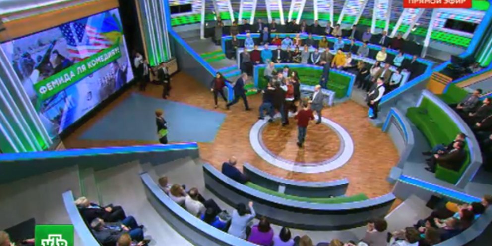 Ο παρουσιαστής του ρωσικού τηλεοπτικού δικτύου NTV Αντρέι Νόρκιν χειροδίκησε με τον Ουκρανό πολιτικό αναλυτή Ντμίτρι Σουβόροφ κατά την διάρκεια της ζωντανής εκπομπής «Σημείο συνάντησης».