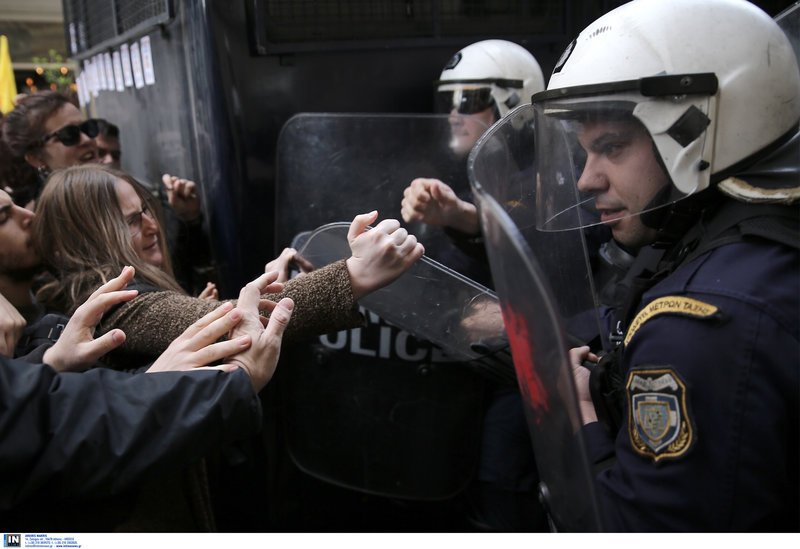 Το μεσημέρι σημειώθηκε ένταση μεταξύ των διαδηλωτών και των ΜΑΤ, καθώς οι διαδηλωτές επιχείρησαν να σπάσουν τον κλοιό της Αστυνομίας και να πλησιάσουν την είσοδο του συμβολαιογραφικού γραφείου. Η Αστυνομία έριξε και χημικά από τα οποία μάλιστα τραυματίστηκε στο μάτι ένας δημοσιογράφος και διεκομίσθη στο νοσοκομείο για τις πρώτες βοήθειες, ενω είχε τοποθετήσει ακριβώς στην είσοδο των γραφείων μια κλούβα για να εμποδίσει την πρόσβαση των διαδηλωτών.
