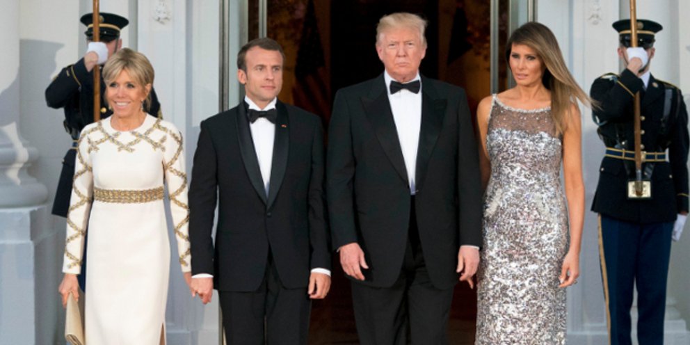 Στο επίσημο δείπνο που παραχώρησαν προς τιμήν τους ο Τραμπ και η Μελάνια παρευρέθηκαν το βράδυ της Τρίτης ο Εμανουήλ Μακρόν και η Μπριζίτ στον Λευκό Οίκο.