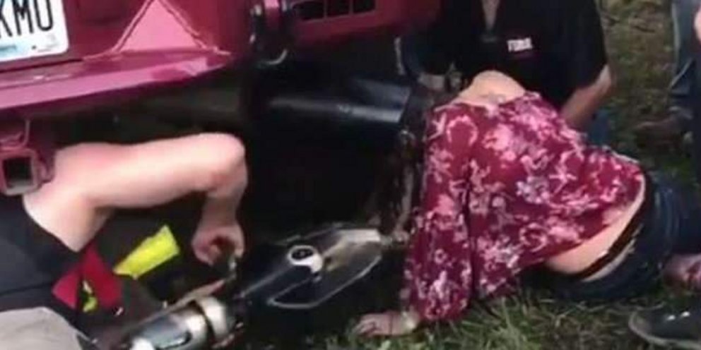 Σύμφωνα με την Daily Mail, η Καιτλίν έμεινε σφηνωμένη στην εξάτμιση για 45 ολόκληρα λεπτά, ενώ μόλις οι διασώστες κατάφεραν να την βγάλουν, εκείνη πήγε κατευθείαν στο νοσοκομείο για εξετάσεις.