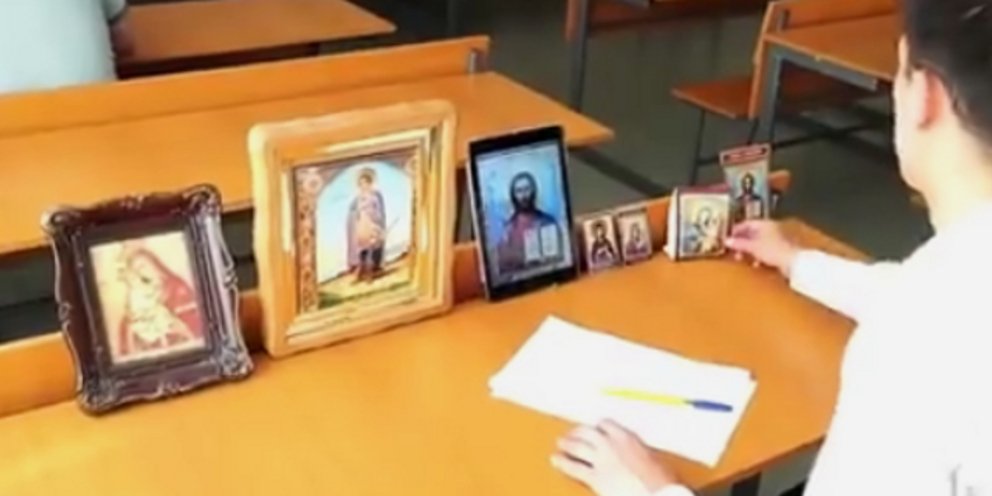 Συγκεκριμένα, ένα από τα εικονίσματα είναι σε τάμπλετ, ωστόσο όμως δεν φαίνεται λόγω του μαύρου χρώματος τριγύρω, με αποτέλεσμα ο μαθητής να αλλάξει την εικόνα με τον Χριστό, βάζοντας στην θέση της την εικόνα με τις... απαντήσεις, αρχίζοντας έτσι να αντιγράφει.