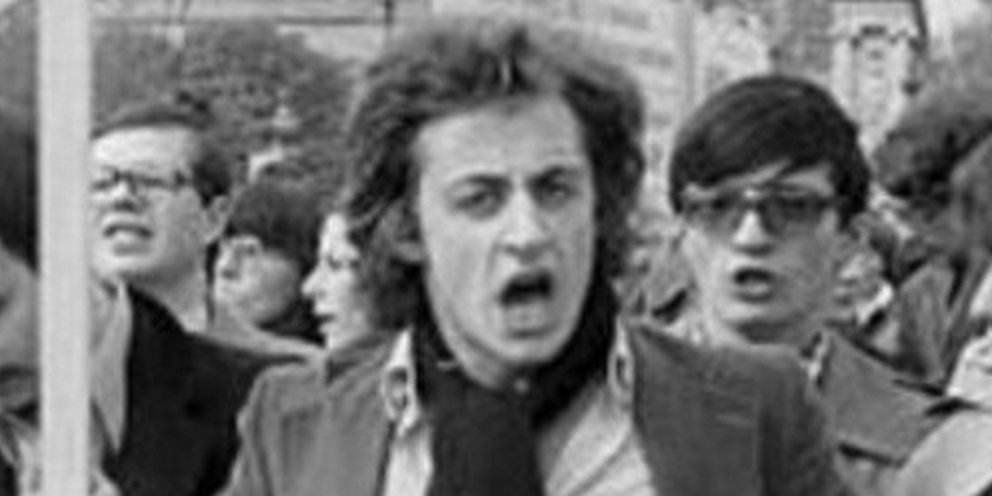 «Καμπάνα» παντελόνι, κασκόλ και τζάκετ. Στην πρώτη γραμμή να φωνάζει με πάθος συνθήματα.
