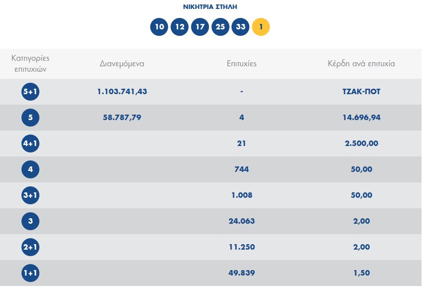 Στη δεύτερη κατηγορία οι τέσσερις νικητές παίρνουν από περίπου 15.000 ευρώ.